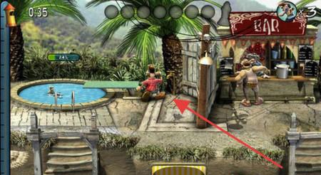 2、进入户外泳池区域,与人物互动,完成任务,解锁新场景。