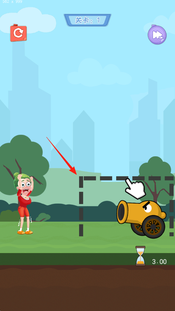 1、点击消除黑色方块,让炮弹发射,保护角色,完成关卡目标。