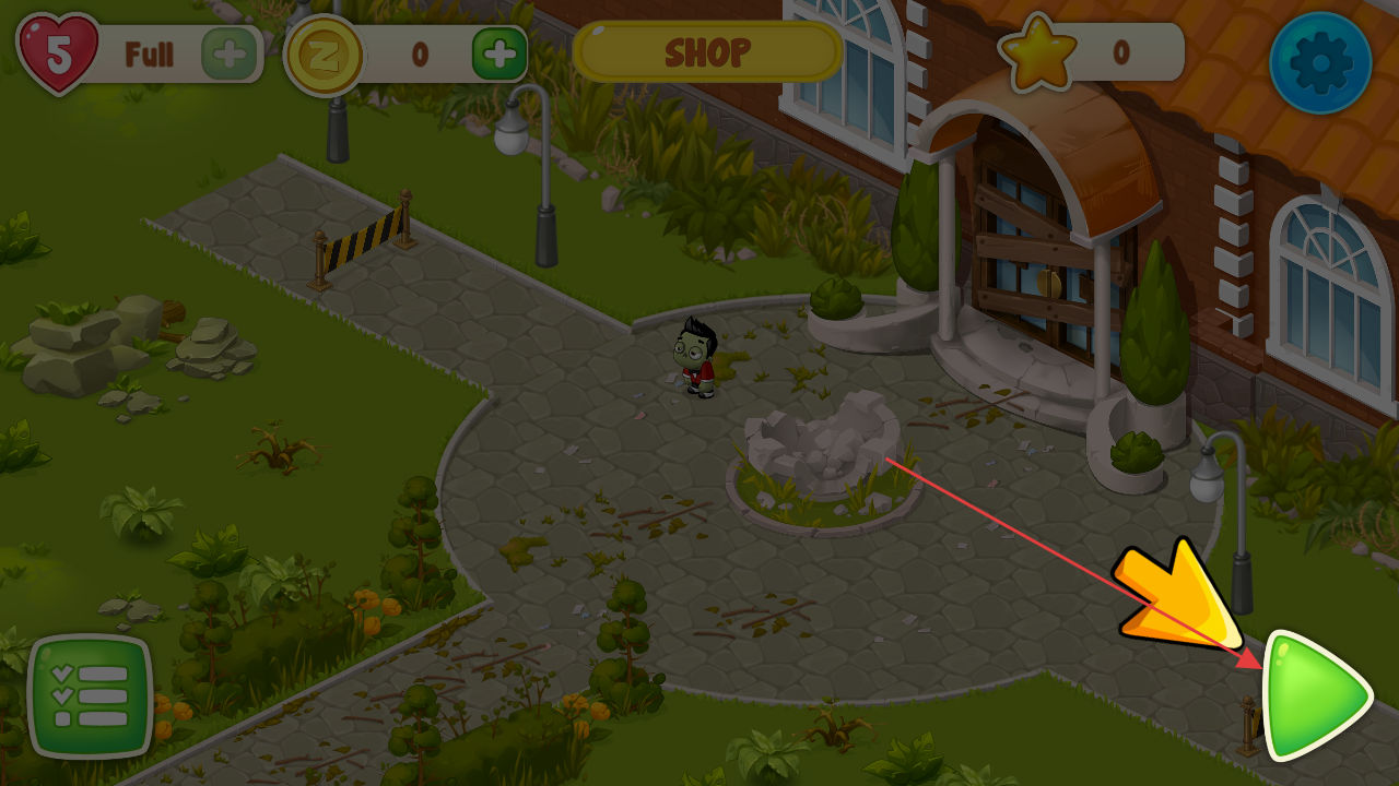 2、根据选择推进剧情,在小镇地图探索(跟随箭头),前往建筑(如SHOP),收集资源、完成任务。