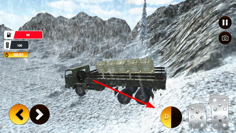 1、进入局内后从基础四驱卡车开始,点击屏幕启动引擎,滑动方向盘控制方向,长按油门键在雪原公路上完成首单木材运输。