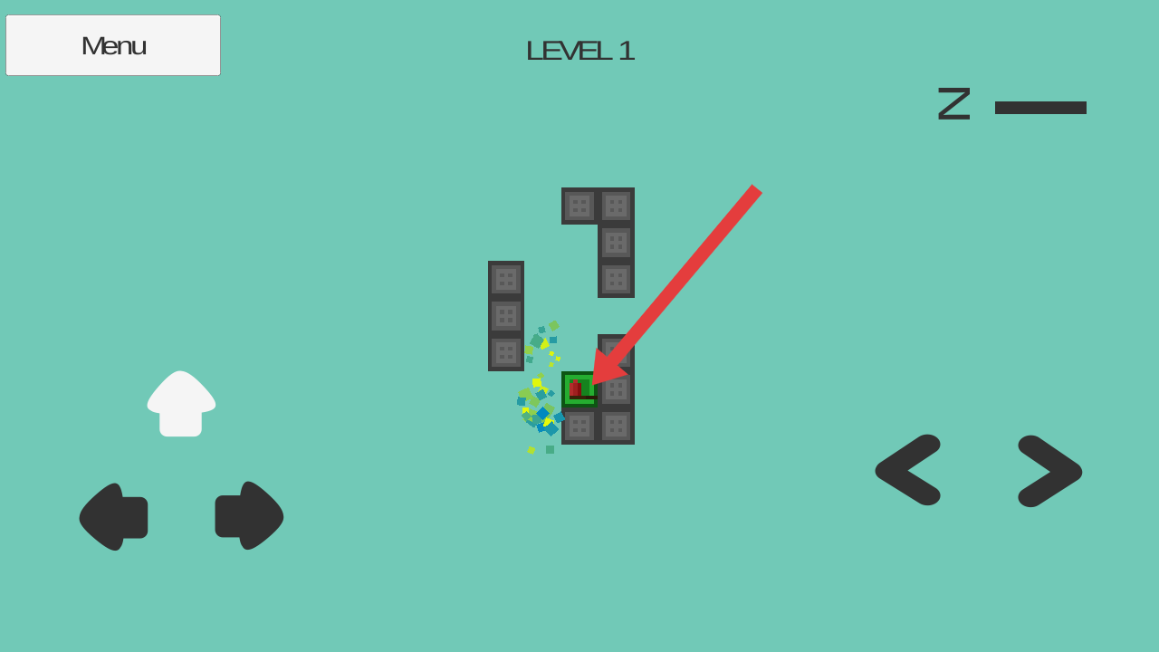 3、进入LEVEL1,借助方向键操控绿色方块,收集场景内彩色碎片,向红旗位置推进,完成关卡。
