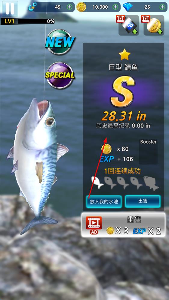2、渔具策略:根据鱼种习性与海域环境,灵活搭配鱼竿、鱼饵等渔具,制定专属钓鱼策略,提高上钩几率。