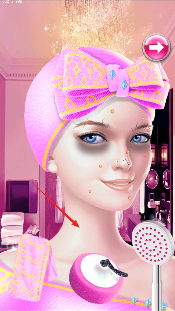 1、选择“Spa”项目,用工具为角色清洁护理,打造光滑肌肤。