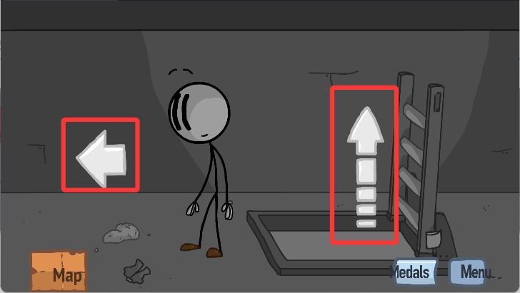 3、开始游戏后需要点击场景里的交互按键,逃离监狱。