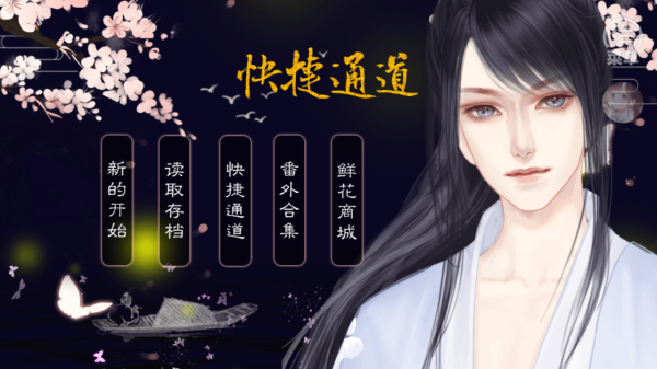 2、快捷通道界面中,可选择【新的开始】启动剧情,【读取存档】延续进度,进入【快捷通道】跳转阶段,或访问【番外合集】【鲜花商城】。