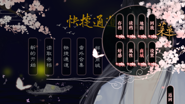 3、快捷通道内菜单,能【存档】【读档】管理进程,【地图】查看场景,【回放】重温剧情,还可查看【好感】【属性】,逛【商城】或调整【设置】。