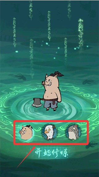 2、游戏现有猪妖、鸟妖、鱼妖三种角色可以选择,选择猪妖开始修炼。
