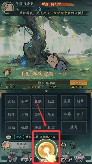 1、点击屏幕砍伐灵木,不仅能掉落各种装备与资源,还可能触发奇遇与挑战,构建出轻松有趣的升级路径。