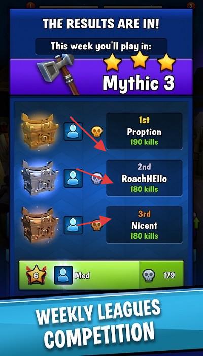 2、参与周联赛,战斗积累击杀数,冲击“Mythic3”段位,赢取宝箱奖励。