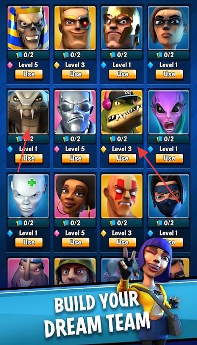 3、收集英雄卡,搭配不同技能、属性角色,应对多样对战场景,提升胜率。