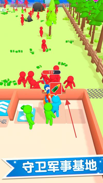 1、在“守卫军事基地”阶段,合并兵种,布置防御,击退红色敌人,守护基地。