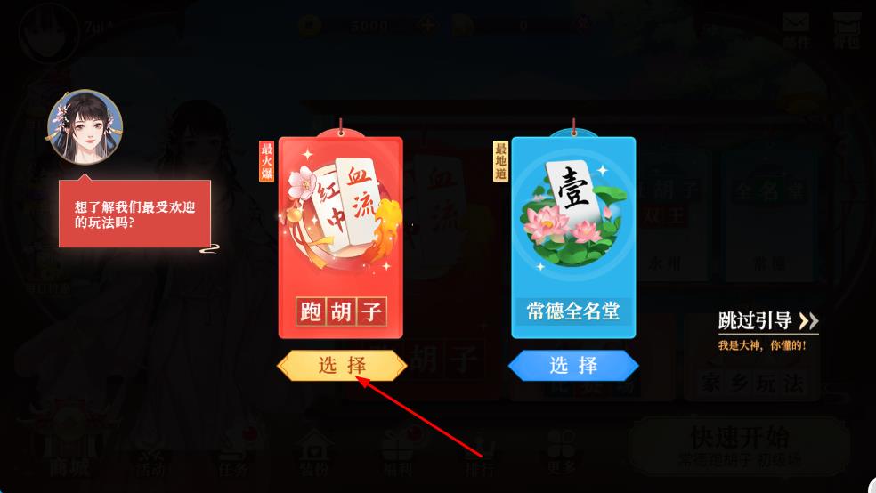 1、进入游戏后从多种地方特色跑胡子玩法中选择模式,熟悉牌面规则与操作方式,准备开始对局。