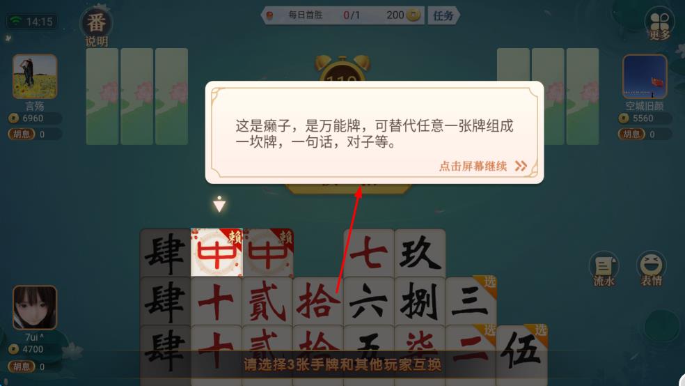 3、达成胡牌条件后赢得对局,积累积分冲击全国排行榜,与各地高手比拼牌技,感受竞技乐趣。