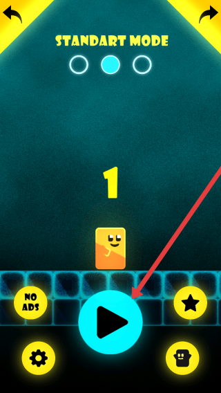 1、主界面点蓝色播放键,选标准模式;可点周边黄钮,关闭广告、调整设置、更换角色或查看收藏。