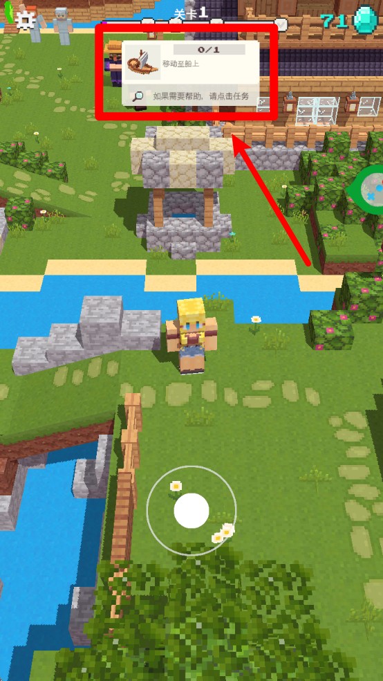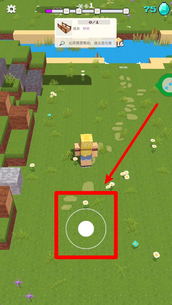 2.下方的虚拟摇杆为主要移动控制按钮,拖动摇杆可让角色在像素世界中自由走动并探索各个场景与任务目标。