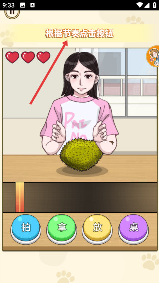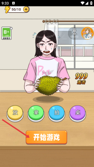 2、节奏操作:按提示“根据节奏点击按钮(拍、拿、放、桌)”,配合音乐节奏点击,积累连击(如999连击)。