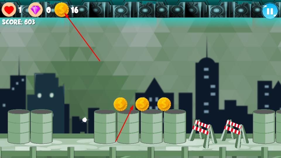 2、在关卡中,避开旋转齿轮、尖刺陷阱,点击发光道具收集金币,遇到弹簧平台长按蓄力,实现高跳,解锁新区域。