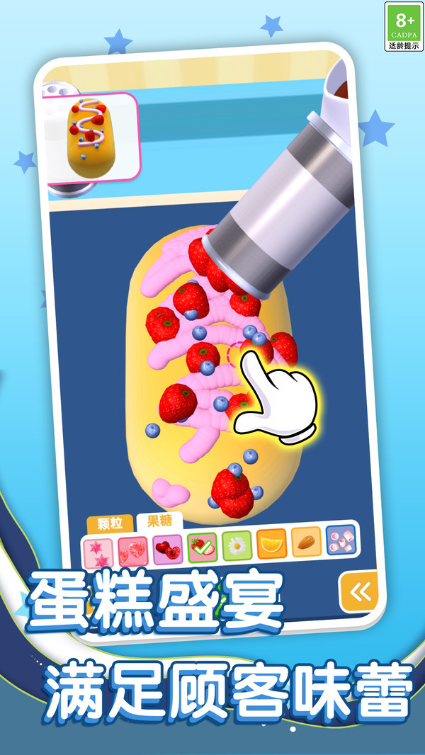 4.解锁装饰内容:利用闯关所赚金币前往商店解锁更多独家蛋糕胚、限定装饰与稀有造型,提升制作乐趣与收藏感。