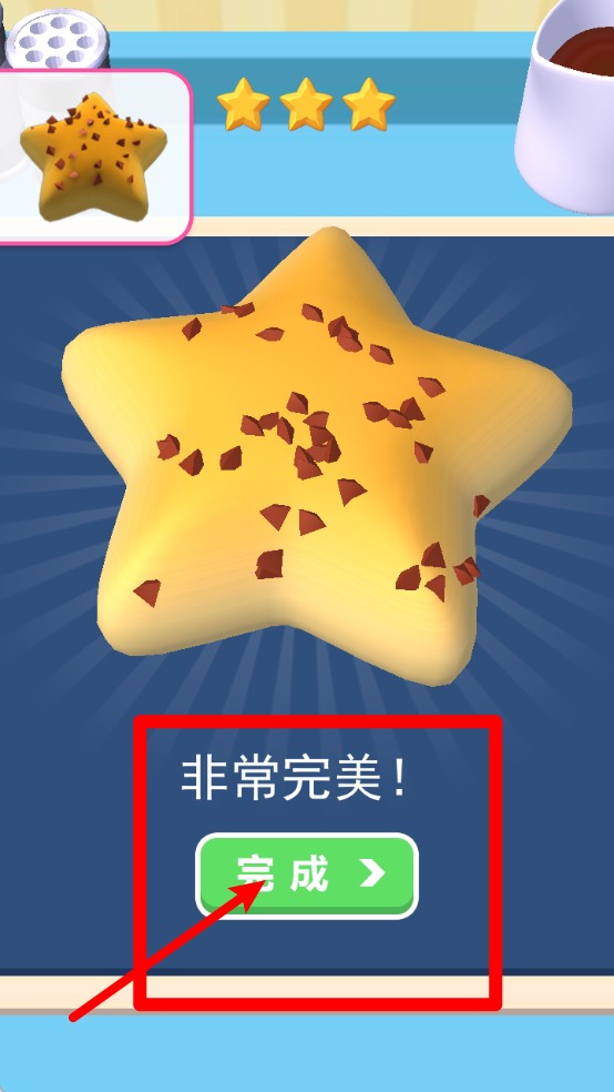 3.评分结算机制:完成蛋糕后系统会自动评分,根据还原度显示星级评价,达到高分还能获得“非常完美”评价。