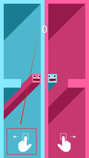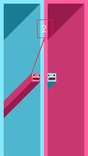 1、 点击开始按钮即可进入游戏,通过触摸屏幕灵活控制左右两侧角色,挑战不同种类的障碍物和难关。