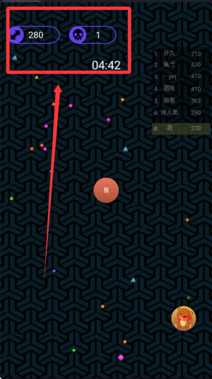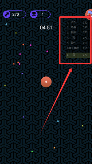1、玩家需要控制自己的球球在地图上移动,寻找比自己小的球球进行吞噬,不断壮大体积提升排名。