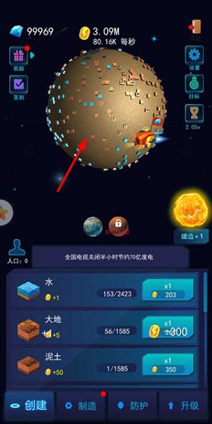 1、进入游戏后,先为新星球注入水和土壤,奠定生命诞生的基础,开启星球演化的第一步。