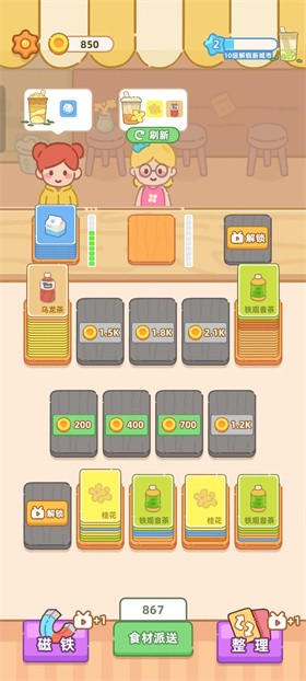 1、创新的饮品调配系统将排序玩法与模拟经营完美结合,从基础的珍珠奶茶到复杂的季节限定款,每种饮品都需要精准的材料配比和步骤安排,成功调制时的满足感令人愉悦。