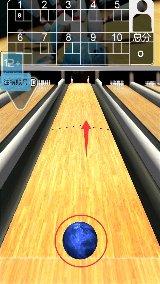 2、瞅准最佳时机松开手指将球掷出,确保球体高速撞击前方球瓶阵列的核心位置。