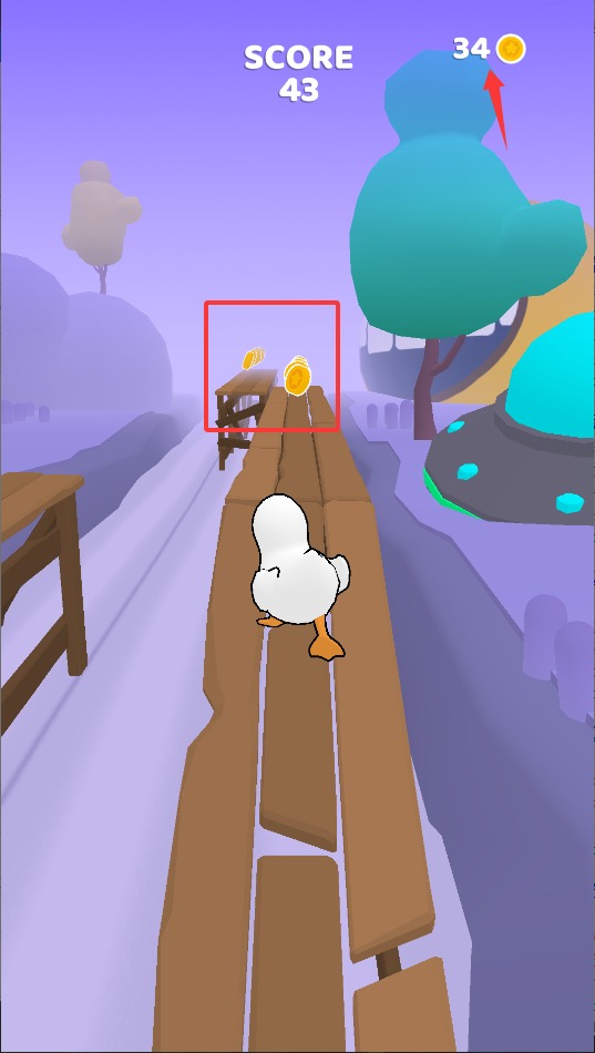 1、游戏开始后通过手指左右滑动屏幕,控制小鸭子灵活移动,注意调整奔跑路线避开突然出现的各种障碍。