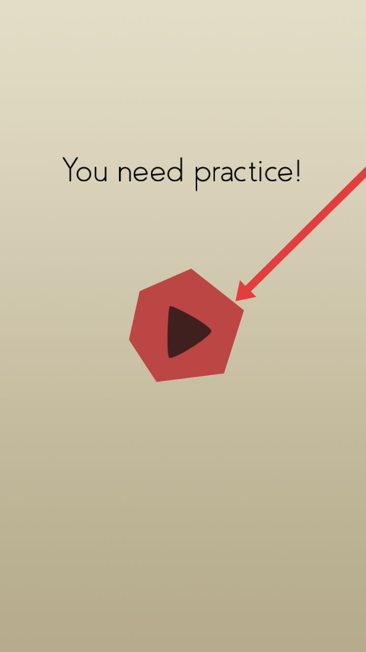 2、若挑战失败,在显示“You need practice”的界面,点击红色五边形播放按钮,重新开始练习关卡。