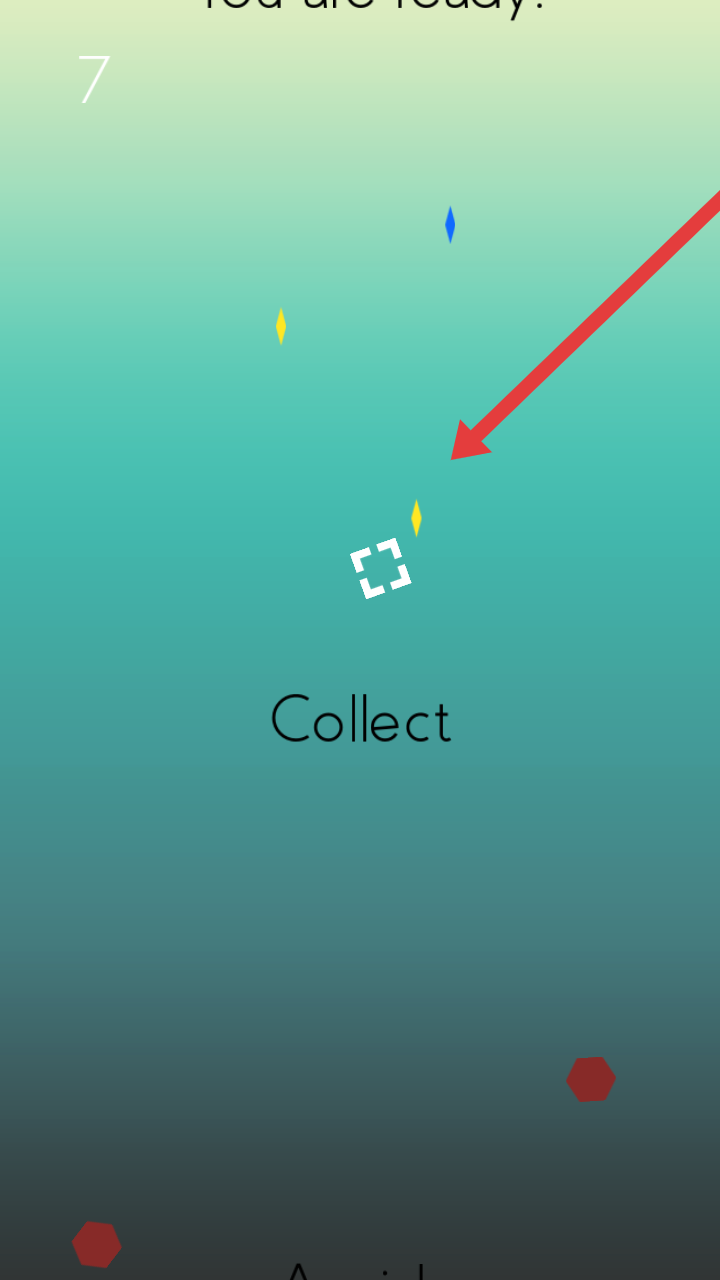 3、游戏过程中,操控白色方块状元素,收集黄色光点,规避红色六边形障碍,达成“Collect”目标推进关卡。