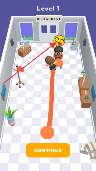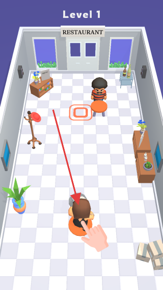 2、传菜中途遇到突然跑过的小朋友,迅速滑动屏幕绕开障碍,同时稳住托盘防止菜品洒出,继续冲向目标餐桌。