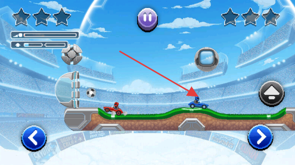 2、在激烈的追逐中,巧妙收集赛道道具,使用干扰导弹阻拦对手,同时寻找机会撞击足球靠近球门。