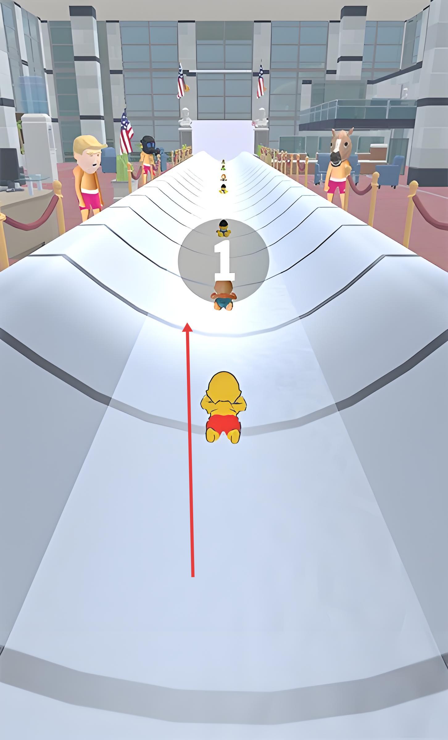 1、进入游戏后在角色选择界面挑选橡皮人颜色,滑动屏幕操控角色站上启动平台,长按屏幕积蓄冲刺能量,松开后以不同初速度进入螺旋滑道。