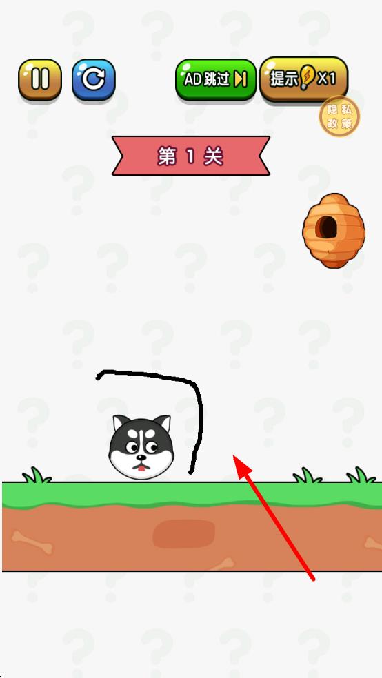 1、进入游戏选择关卡,观察狗头与蜜蜂位置,用手指在屏幕上画出线条,为狗头搭建初始防护屏障。