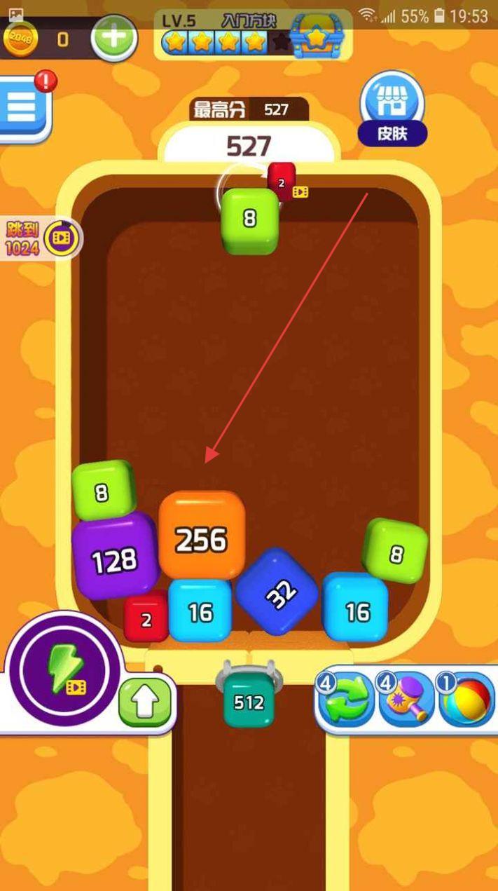 3、推进“入门方块”等关卡,目标合成 1024 等,提升等级,解锁新皮肤、道具,拓展玩法。
