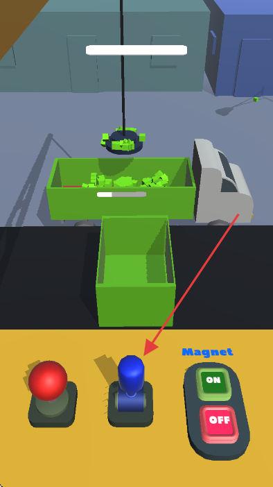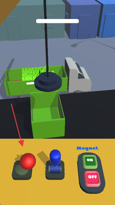 2、操控左侧红色摇杆,控制磁铁移动,抓取绿色物品。