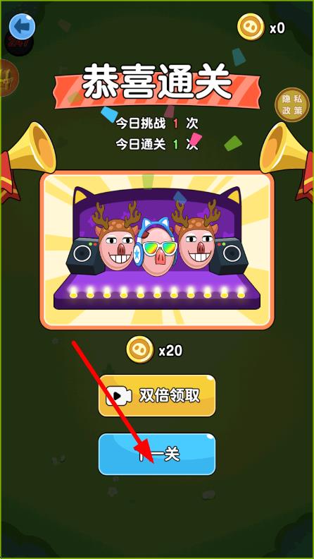 3、达成关卡分数目标即可通关,剩余时间转化为额外奖励,连续消除的动物越多,combo加成越高,收集关卡中的“金胡萝卜”可解锁动物皮肤,提升消除特效的观赏性。