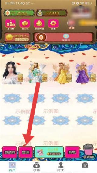 3、进入功能界面,点击【加速】按钮,消耗资源,加快美女养成进度,提升角色属性。