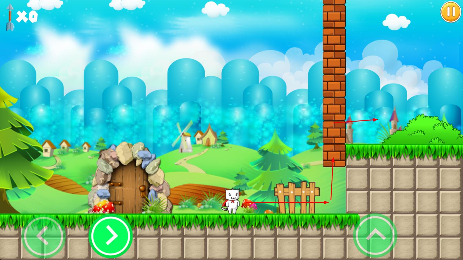 1、进入超级猫里奥IIHD,通过经典虚拟按键控制猫里奥左右移动、向上跳动,开启在满是陷阱关卡中的初次冒险。