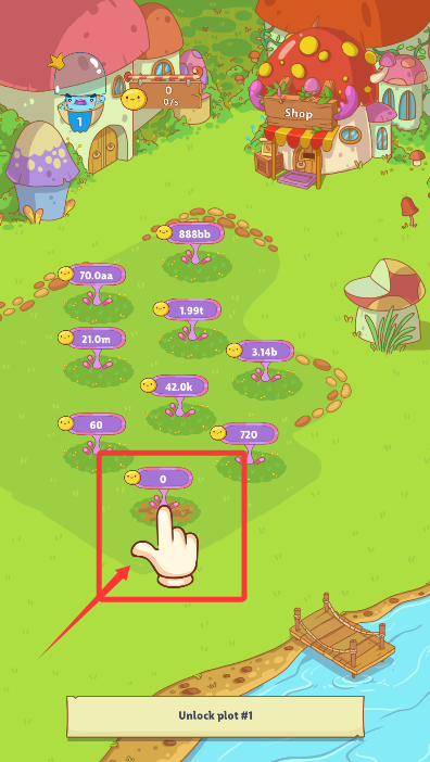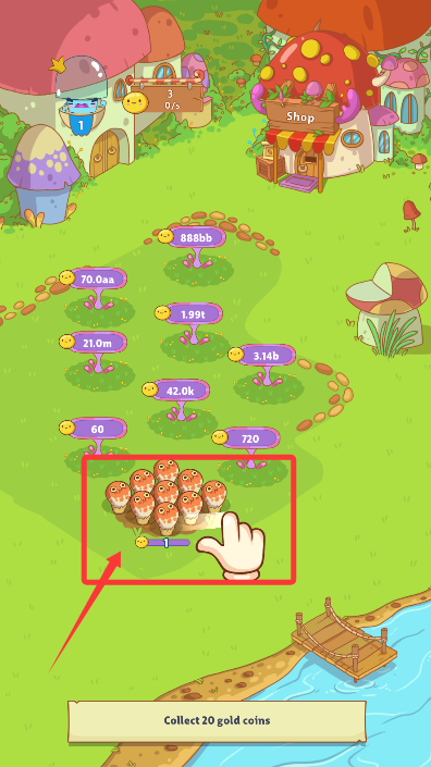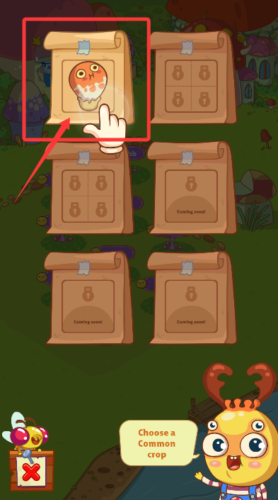 1、进入游戏后根据引导点击操作,在专属菌园中培育各具特色的萌趣蘑菇。