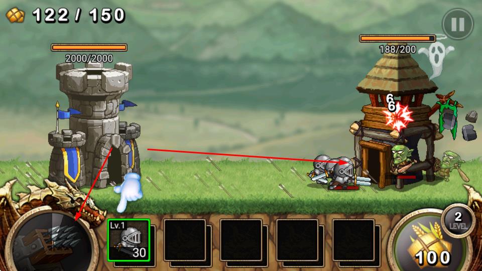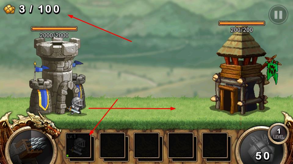 3、击败敌方单位、摧毁塔楼获取金币,升级兵种或解锁新单位,强化进攻能力。