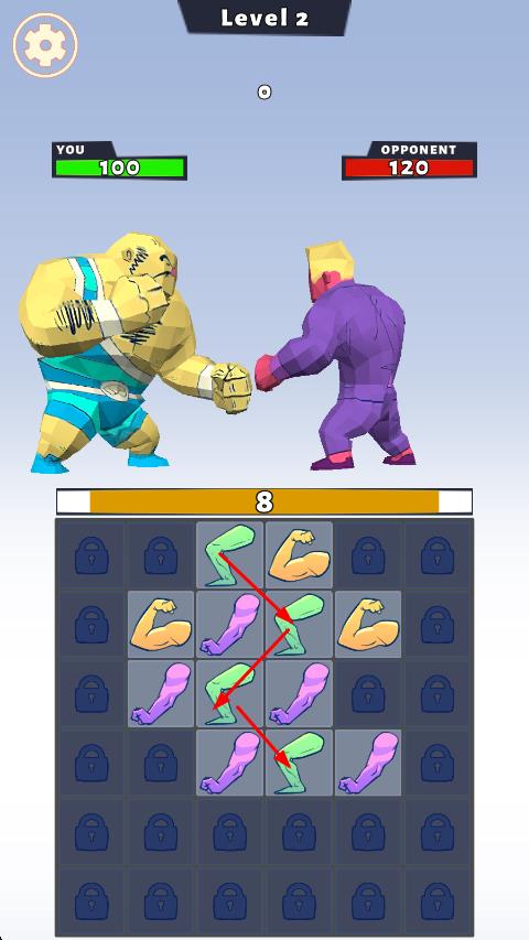 1、简易操作控制:采用简单控制方式,只需将手指拖过两条或多条肌肉即可匹配,完成对应操作,轻松上手,还能解锁更多道具助力战斗。