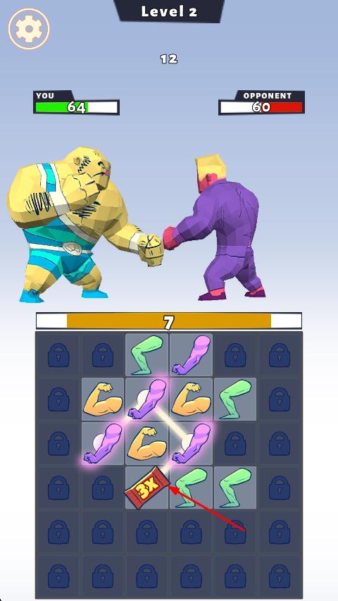 2、肌肉合并强化:在游戏里可通过合并肌肉来增加攻击力,让你更容易击倒敌人,击败的敌人越多,得分越高,提升成就感。
