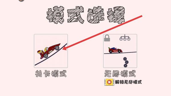 2、在模式选择页,可以点击【关卡模式】,进入赛道,需要用绘画造车,参与关卡竞速。