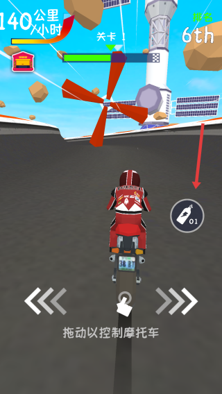 3、争取排名:在行驶中提升速度,躲避障碍,冲过终点,提升排名(如从4th到6th),解锁新关卡。