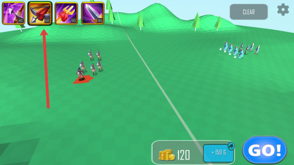 2、战斗部署时,点击箭头指向的技能图标,为军队配置技能(如攻击增益),消耗金币,安排阵型。