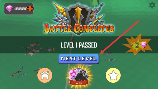 3、完成LEVEL1,点击【NEXT-LEVEL】,进入下一关,继续战斗,积累钻石,升级军队,推进战役。