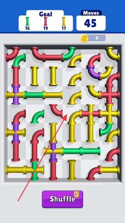 1、进入关卡后,观察初始管道布局与目标位置,点击管道元件进行旋转,使其与相邻管道连通。部分关卡包含可移动管道,需拖动至合适位置完成连接。