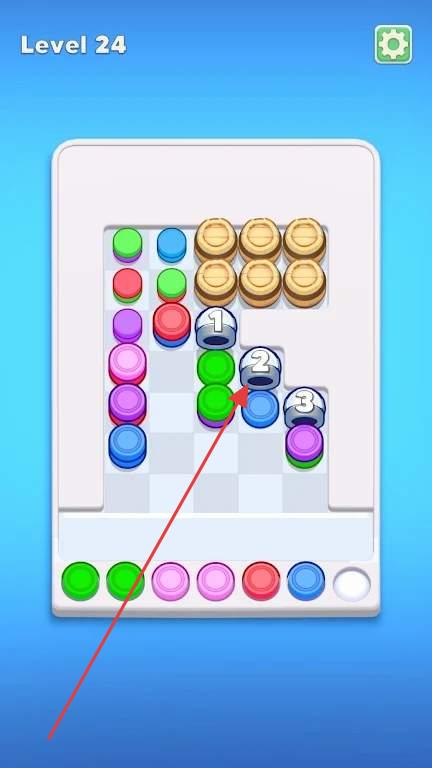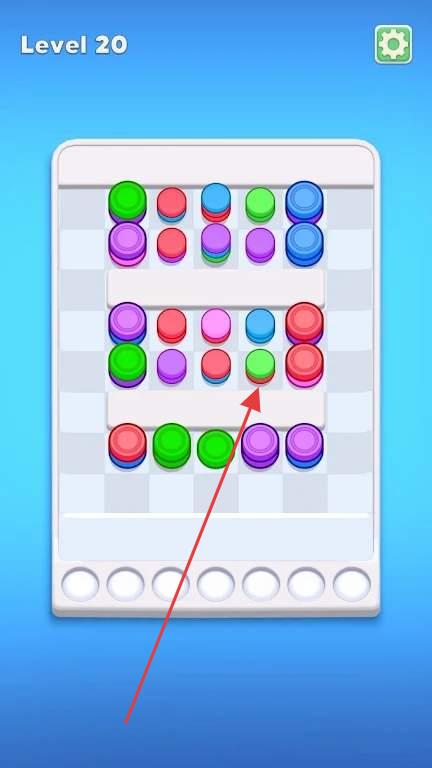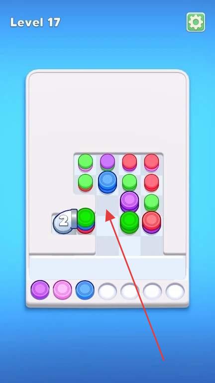 1、进入关卡后,观察令牌池与游戏区域,滑动屏幕选择令牌下落位置,横向或纵向连成同色三消即可触发消除。
